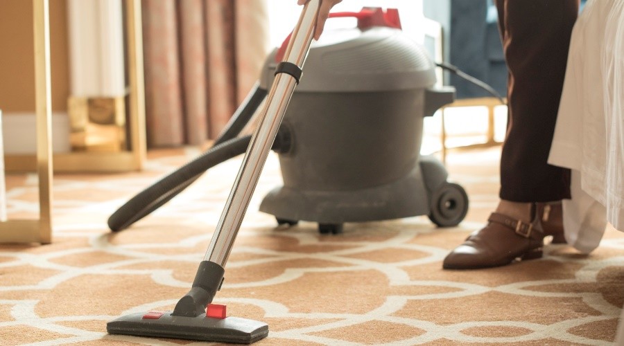 用吸塵器全面吸塵,稀釋清潔劑,也可注入水箱。在地毯上全面噴灑清潔劑,作用10-15分鐘后,污漬脫離纖維,用洗地機抽洗,操作向后行走而使每操作行有一部分重疊,最少經過兩次抽洗,在清洗地毯的同時,用吸水機吸凈已洗完的地毯,讓地毯完全干透,為加快地毯干透,可開動地毯吹干機。
